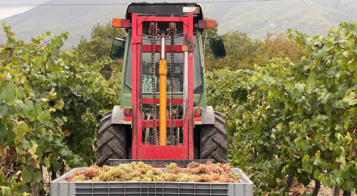 Мы приступили к сбору последнего белого сорта винограда в этом сезоне — Алиготе с нашего участка на терруаре Мысхако!
